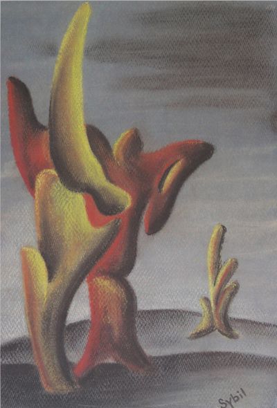 Shirley did not put her name on any piece of art that she didn’t recognize as her own. It was a disturbing occurrence for her to enter her studio and find work on the easel of which she had no conscious memory. This must have been an already frequent happening while she was a student at Mankato in the early 1940’s where she wrote numerous articles for the student paper concerning the use of pseudonyms and pen names. In one article Shirley stated it was the "what" not the "who" that was important, and no artist should put their name on any work or creation that was not their own. Other students may have thought this a curious topic to be so passionate about, but they didn’t know then what we know now about Ms. Mason’s surrealistic reality. And in a final twist of irony, Shirley Mason, known to the world as Sybil... a pseudonym, is demonstrating that for these particular pieces, it is the "who", and not just the "what" that makes them important.